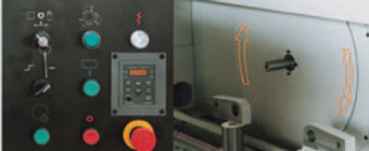 The machine employs two speed regulator knobs to adjust the table feed forward and blckward speeds.